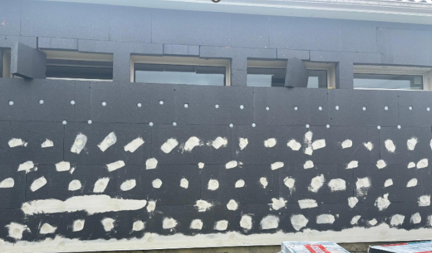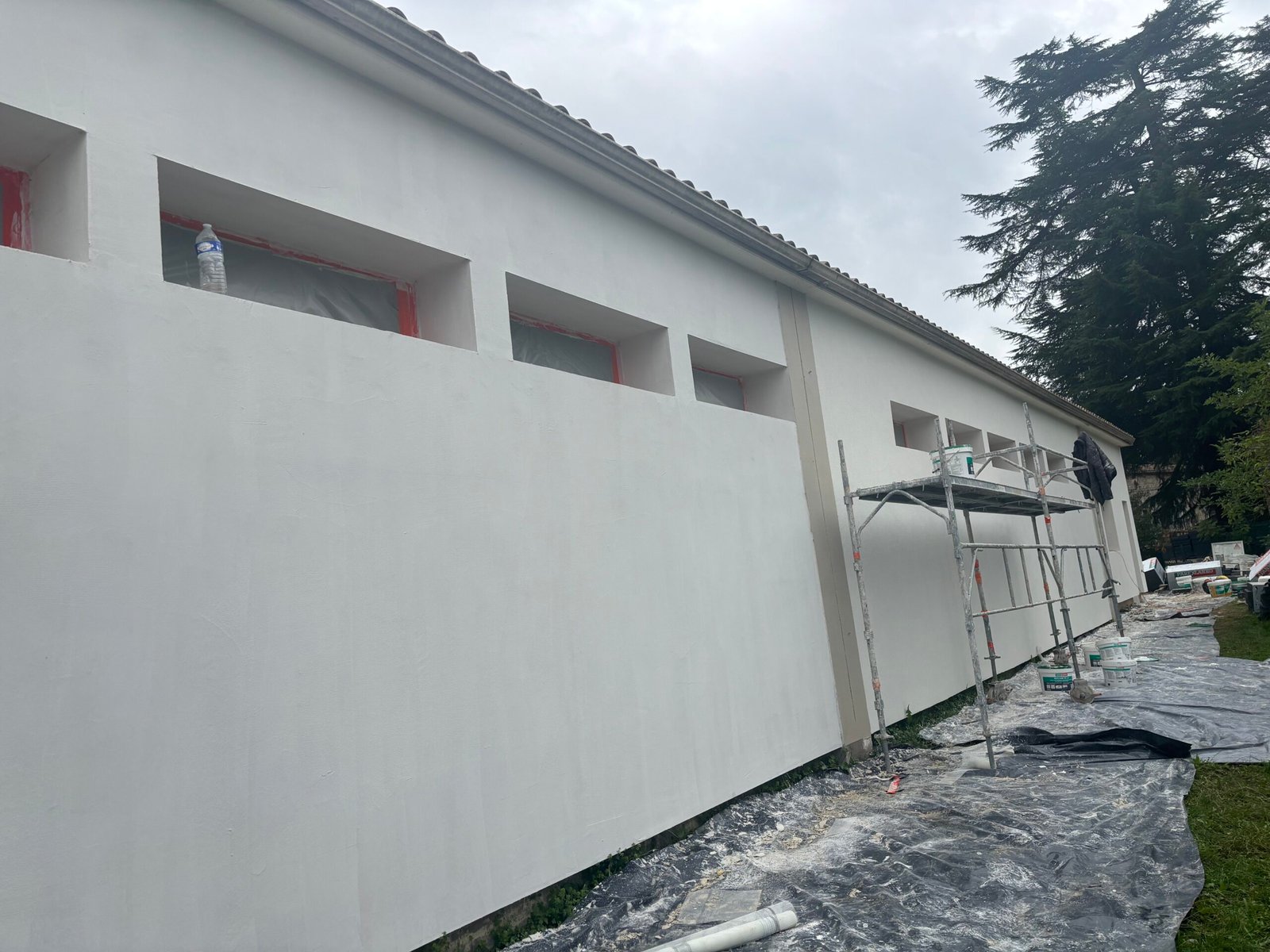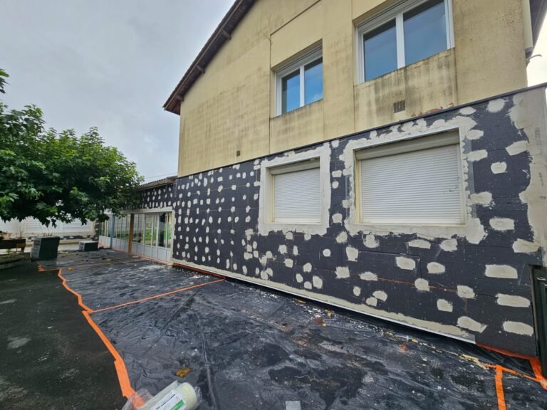 Ce projet d’Isolation Thermique par l’Extérieur (ITE) visait à améliorer drastiquement la performance du bâtiment. Nos équipes ont mis en œuvre un système complet : pose de panneaux en polystyrène, application d’une sous-couche armée pour la résistance, et finition par enduit pour l’esthétique.