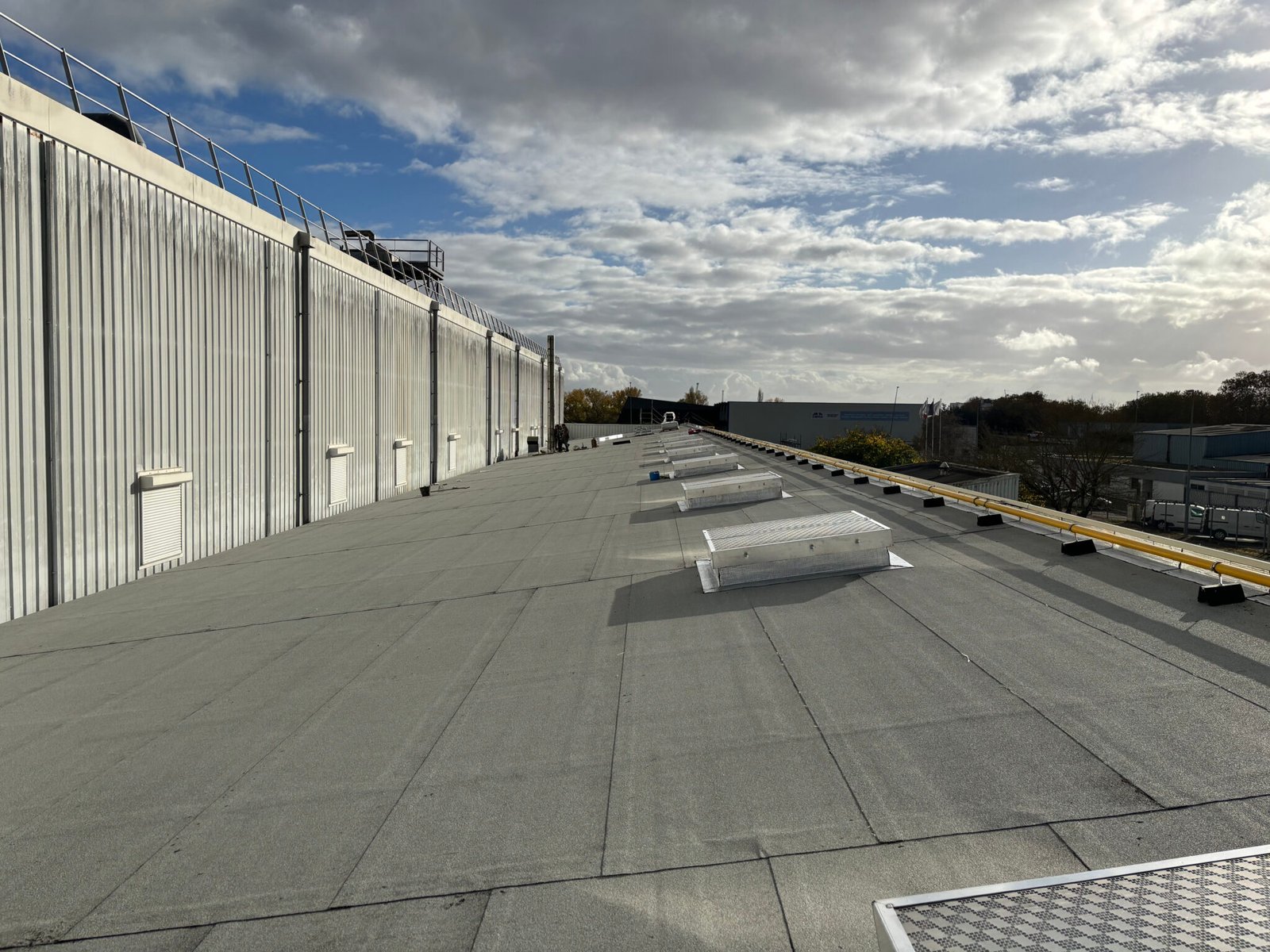 Pour garantir une protection longue durée face aux intempéries, nous avons mis en œuvre un complexe d’étanchéité bicouche bitume élastomère sur isolant. Le confort de travail n’a pas été oublié avec l’installation de nouveaux lanterneaux pour un apport de lumière naturelle optimal. Un chantier technique livré en 2 mois.